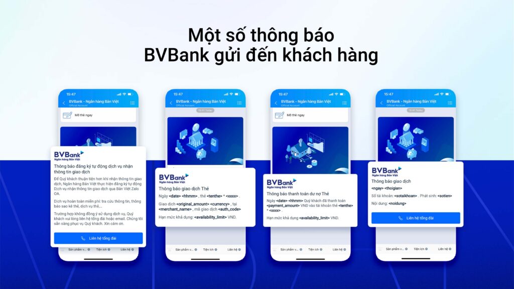 Nhờ khả năng gửi thông báo trực tiếp qua Zalo theo số điện thoại, BVBank có thể đảm bảo thông tin đến khách hàng nhanh chóng, chính xác và đúng thời điểm.